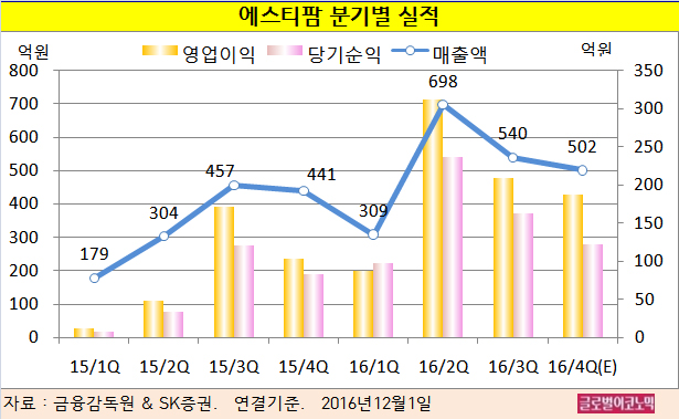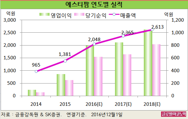 노 연구원은 “에스티팜은 글로벌 의약품 시장에서 탁월한 원료의약품 공급업체로 검증을 받았다”면서 “글로벌 제약사에 지속적인 납품수주 등을 통해 매년 고성장이 이어지고 있다”고 진단했다.