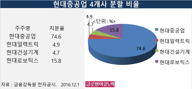 현대로보틱스, 15.8% 비율로 자산 배분 받아 모기업 현대중공업 경영권 장악… 오너 위한 회사분할 우려 목소리도