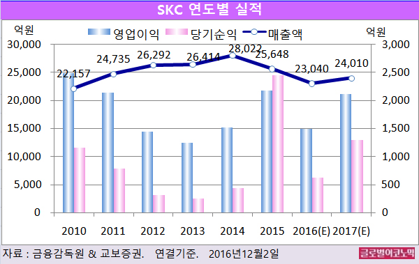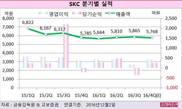 교보증권 손영주 연구원은 SKC의 올해 4분기 실적이 매출액 5768억원(전분기비 -1.7%), 영업이익 429억원(전분기비 +246억원), 당기순이익 251억원(흑자전환)을 기록할 것으로 내다보고 있다.