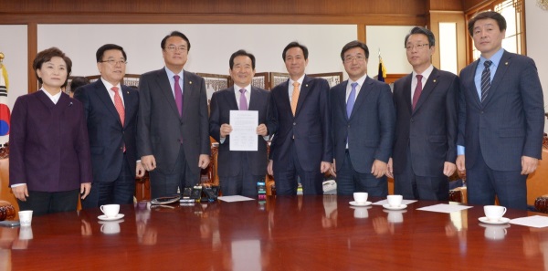 정 의장은 예산안 협상 타결과 관련, "그간 국민들의 가장 큰 관심사항이면서 걱정거리 중 하나였던 누리예산이나 세법과 관련해서 3당이 합의에 이르러 의장으로서 원내대표들과 정책위의장들, 예결위원장 등에 진심으로 감사한다"고 밝혔다고 뉴시스는 전했다.