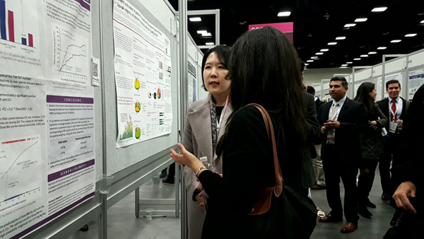 이미지 확대보기지난 3일부터 6일까지 미국 캘리포니아 샌디에고에서 개최된 제58차 미국 혈액학회에서 서울대 약학대학원 이장익 교수 연구진의 노하연 박사가 2세대 만성골수성백혈병 치료제 슈펙트의 용량과 유효성과의 상관관계에 관한 임상 3상 분석결과를 포스터로 발표했다.