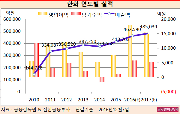 이어 2017년에는 연결기준 매출액 48조5039억원(전년비 +4.9), 영업이익 1조5438억원(전년비 -14.8%), 당기순이익 5381억원(전년비 -7.0%)을 기록할 것으로 전망하고 있다.