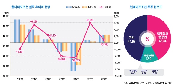 동부증권 김홍균 연구원은 “3분기 실적이 컨센서스를 밑돌았다”면서 “하계 휴가 등 조업일수가 줄어들면서 매출액이 감소하고 원화 강세, 위로금 지급, 한진해운 관련 선박펀드 손실 등으로 영업이익률이 기대치를 밑돌았다”고 설명했다.