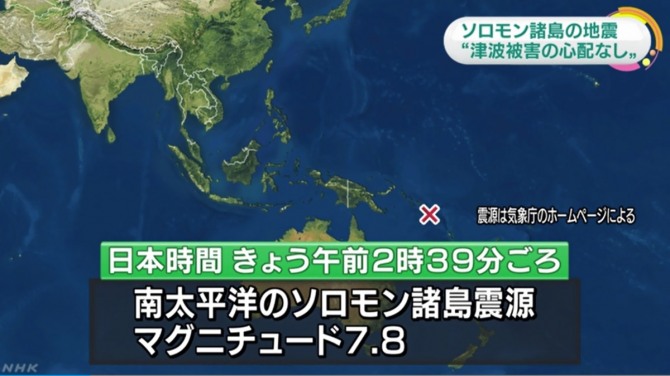 AFP통신 등 외신은 “미국 하와이의 태평양 쓰나미경보센터가 솔로몬 제도와 파푸아뉴기니 등 주변의 섬 국가에 최대 3m의 쓰나미 발생 우려가 있어 쓰나미 경보를 발령했다”고 전했지만 현지시간 오전 7시께 “쓰나미 발생 위험이 거의 사라졌다”고 정정했다.