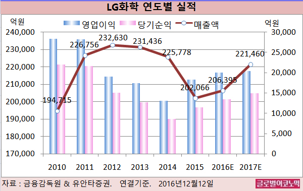 2017년에는 자동차배터리, 바이오화학(팜한농, LG생명과학)으로부터 이익이 창출되면서 사업포트폴리오 안정성이 부각되는 시기가 될 것으로 분석됐다.