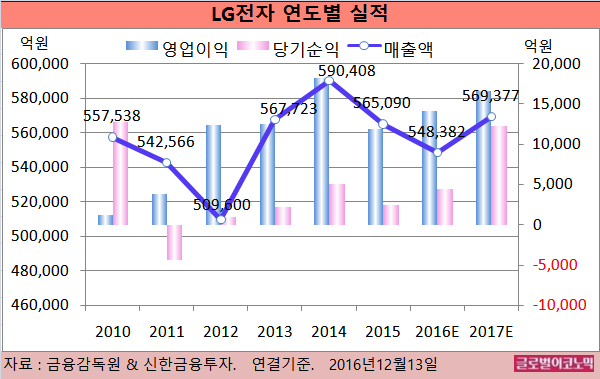 소 연구원은 “2017년 스마트폰 사업 영업적자 축소로 LG전자의 영업이익이 큰 폭 증가할 것”이라며 “LG전자 가전사업을 세계 최고 브랜드로 일군 신임 조성진 CEO는 강력한 리더쉽을 통해서 스마트폰 사업부의 영업적자를 축소시킬 것”이라고 진단했다.