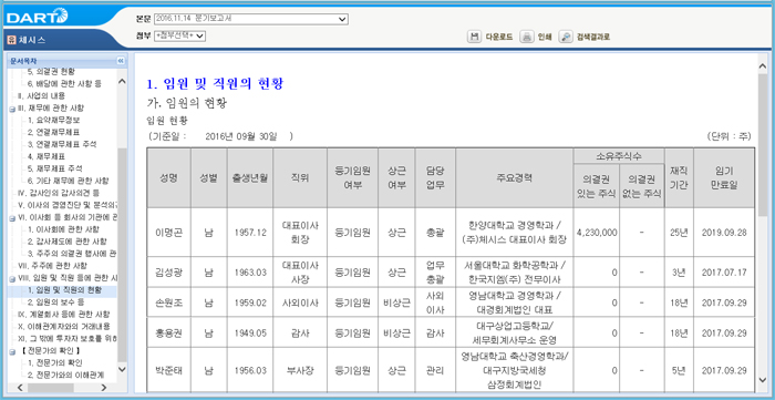 금융감독원 전자공시에 따르면 체시스 이명곤 회장은 1957년 12월 생으로 한양대학교 경영학과를 졸업한 것으로 나와 있다. 김 전 대표와는 6살 차이인 셈이다.