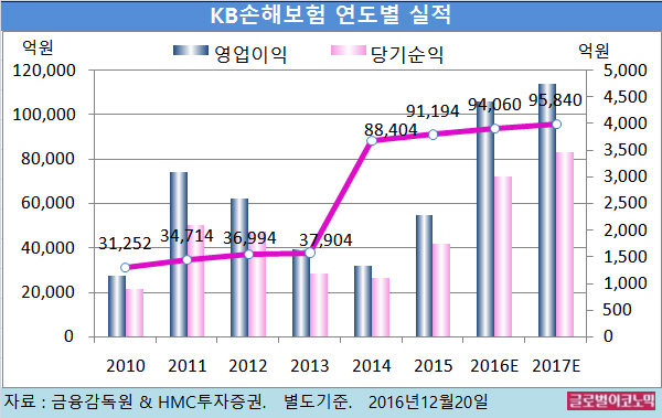 김 연구원은 KB손해보험의 올해 별도기준 원수보험료(매출액)가 9조4060억원(전년비 +3.0%), 영업이익 4420억원(전년비 +93.9%), 영업이익 3010억원(전년비 +73.3%)을 기록할 것으로 내다보고 있다.