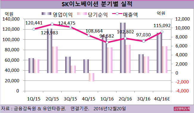 유안타증권 황규원 연구원은 SK이노베이션의 올 4분기 연결기준 매출액이 11조5092억원(전년기비 +5.9%), 영업이익 8933억원(전년동기비 +191.4%)을 기록할 것으로 내다보고 있다. 지배주주 순이익은 5928억원(흑자전환)으로 전망됐다.