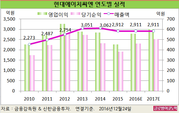 이어 2017년에는 연결기준 매출액 2911억원(전년비 0.0%), 영업이익 601억원(전년비 +7.7%), 당기순이익 505억원(전년비 +9.5%)에 이를 전망이다.