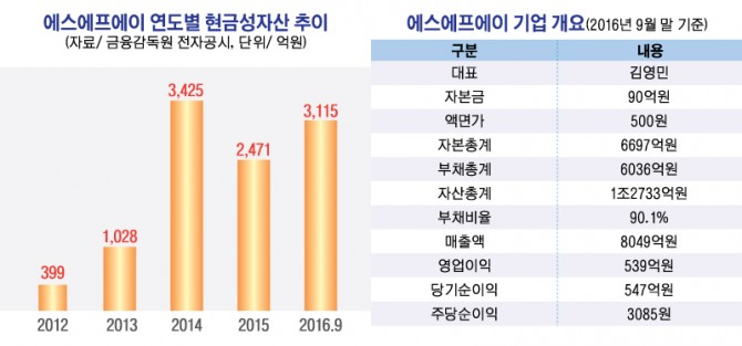 에스에프에이의 현금 및 현금성자산은 지난 2012년 399억원에 불과했으나 2013년 1028억원, 2014년 3425억원, 2015년 2471억원으로 급속도로 증가한 모습을 보였다.