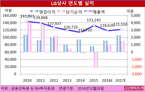 NH투자증권 김동양 연구원은 LG상사의 올해 연결기준 매출액이 11조8620억원(전년비 -11.0%), 영업이익 1570억원(전년비 92.2%), 당기순이익 880억원(흑자전환)을 기록할 것으로 내다보고 있다.
