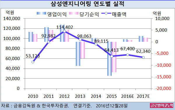 이 연구원은 “주택시장 불확실성이 커지는 반면 EPC 시장은 5년간 다운사이클의 끝을 보이고 있다”면서 “2017년 포인트는 실적보다 재기를 위한 현금흐름과 수주모멘텀”이라고 분석했다.