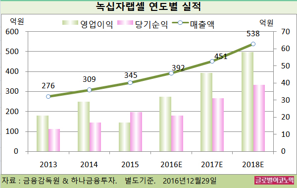 이어 2017년에는 매출액 538억원(전년비 +19.3%), 영업이익 58억원(전년비 +26.1%), 당기순이익 39억원(전년비 +25.8%)에 이를 전망이다.