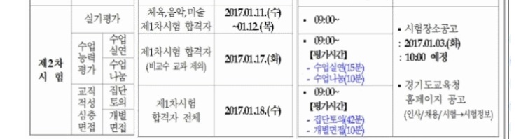 이미지 확대보기2차 시험 실기평가는 오는 1월11일~ 12일, 수업능력평가는 1월17일, 교직적성 심층면접은 1월18일에 각각 실시된다.