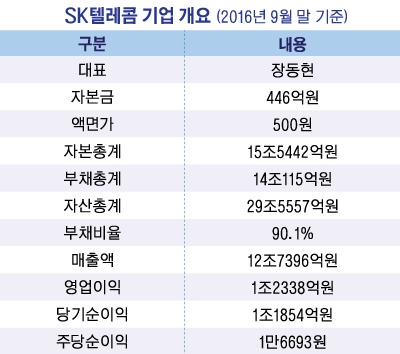 SK텔레콤은 2016년 9월 말 현재 1조1854억원의 당기순이익을 기록하며 주당순이익(EPS)이 1만6693원에 이른다. SK텔레콤의 주가는 22만4000원을 오르내리고 있어 주가수익비율(PER)은 약 10배 수준을 보이고 있다.