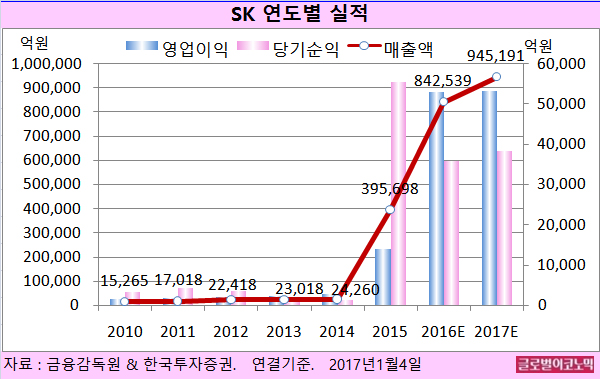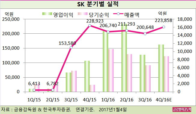 SK의 2016년 4분기 영업실적은 시장 예상치 수준으로 추정된다.
