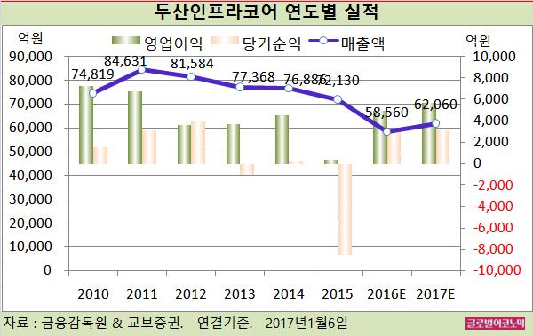 교보증권 이강록 연구원은 두산인프라코어의 올해 연결기준 매출액이 6조2060억원(전년비 +6.0%), 영업이익 5690억원(전년비 +16.1%), 당기순이익 3140억원(전년비 -0.6%)을 기록할 것으로 내다보고 있다.
