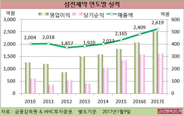 삼진제약은 2016년 4분기 성과급 및 광고선전비 등 비용집행으로 이익이 소폭 감소할 것으로 예상된다.