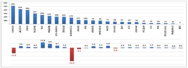 반면 식료품 제조업(1만2400명)과 화장품이 포함된 화학제품 제조업(9100명)은 취업자가 증가했다. 1인 가구 증가로 간편식 매출이 늘어났으며 한류 영향으로 화장품 등의 수출 호조 때문으로 풀이된다.