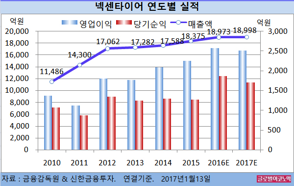2016년에는 연결기준 매출액 1조8973억원(전년비 +3.3%), 영업이익 2580억원(전년비 +14.7%), 당기순이익 1864억원(전년비 +46.7%)에 이를 전망이다.