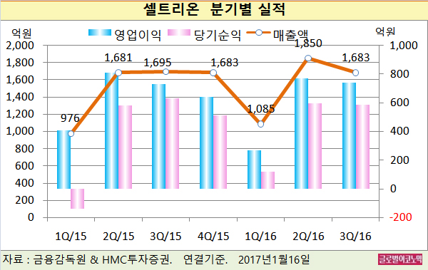 셀트리온의 2016년 4분기 실적은 시장 전망치에 부합할 전망이다.