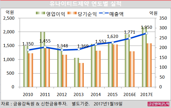 신한금융투자 배기달 연구원은 유나이티드제약의 올해 별도기준 매출액이 1950억원(전년비 +10.1%), 영업이익 307억원(전년비 +15.4%), 당기순이익 222억원(전년비 +22.7%)에 이를 것으로 내다보고 있다.