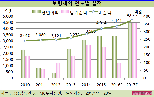 2016년에는 별도기준 매출액 4191억원(전년비 +4.4%), 영업이익 273억원(전녀니 -1.1%), 당기순이익 97억원(전년비 -52.2%)에 이를 예상이다.