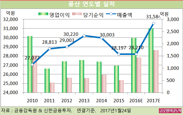 2016년에는 연결기준 매출액 2조8210억원(전년비 +0.0%), 영업이익 2241억원(전년비 +101.7%), 당기순이익 1448억원(전년비 +180.6%)에 달할 것으로 추정된다.