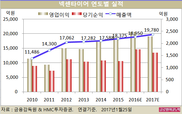 넥센타이어는 2016년 잠정실적에서 나타난 4분기 연결 매출액이 시장 컨센서스에 부합했지만 영업이익은 10% 이상 하회하며 7개 분기 만에 영업이익이 전년동기 대비 감소 현상을 보였다.