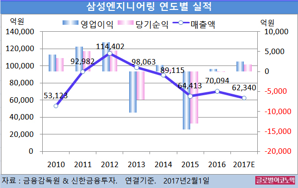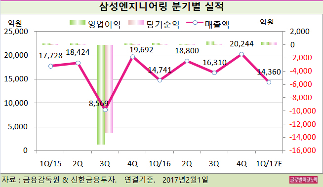 신한금융투자 박상연 연구원은 “삼성엔지니어링 수주가 저점을 통과할 전망”이라며 “2017년에도 2조~3조원 수준의 그룹사 수주가 가능하며 해외도 수주 대기 프로젝트가 존재한다”고 판단했다.