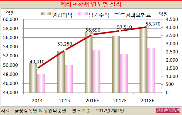 2017년은 지난해처럼 채권 매각을 통해 높은 투자이익을 실현하기 어려우며 설계사 조직 개편 및 GA(보험대리점)와의 협상에 따른 신계약 결과가 본격적으로 반영될 것으로 보기 때문이다.