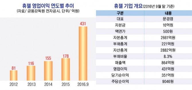 이는 휴젤이 제품을 팔면 절반 상당의 영업이익을 남긴다는 것으로 상장사 가운데 영업이익률 선두권을 기록하고 있는 알짜배기 회사다.