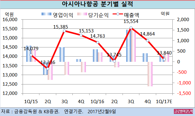 강 연구원은 아시아나항공의 지난해 4분기 영업이익이 시장 컨센서스 및 KB증권 전망치를 각각 17.7%, 16.3% 하회하는 것이라고 평했다.