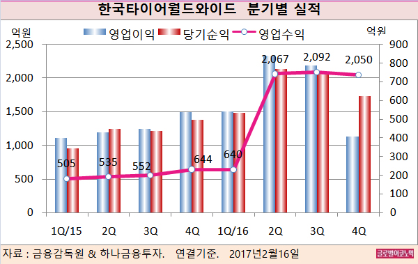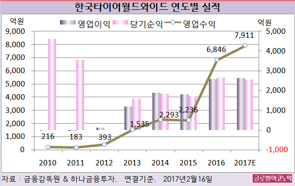 2016년 연결기준 영업수익은 6846억원(전년비 +206.2%), 영업이익 2577억원(전년비 +41.9%), 당기순이익 2670억원(전년비 +54.6%)으로 잠정 집계됐다.
