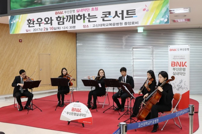 이날 BNK실내악단은 모차르트의 심포니 25번, 리베르탱고를 비롯 총 11곡의 곡을 통해 환자 및 보호자들에게 큰 감동을 선사했다.