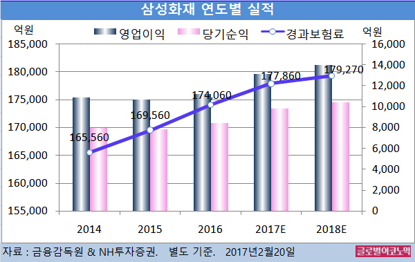 한 연구원은 보험영업 부문에서의 견실한 이익 증가 방향성을 고려해 삼성화재의 2017년 순이익을 9846억원으로 예상했다고 설명했다.