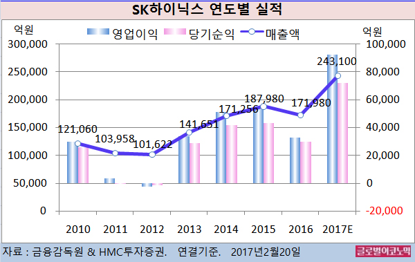 노 연구원은 SK하이닉스의 올해 연결기준 매출액은 24조3100억원(전년비 +41.4%), 영업이익 9조2400억원(전년비 +182.0%), 당기순이익 7조1940억원(전년비 +143.0%)을 기록할 것으로 추정하고 있다.