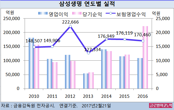 삼성생명은 2015년 및 2016년 말 각각 3300억원, 4100억원 내외의 보증 준비금을 추가전입했다.