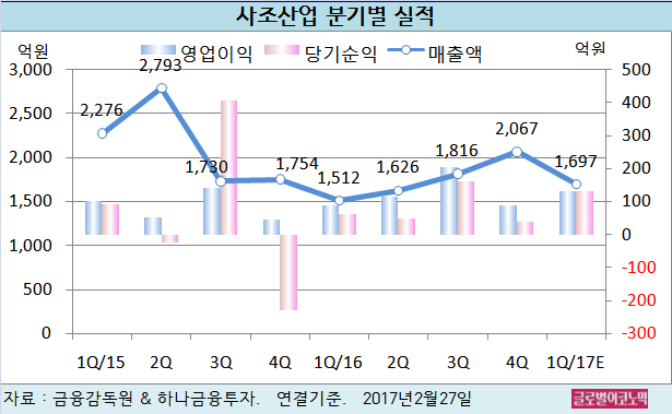 하나금융투자 심은주 연구원은 사조산업의 올해 연결기준 매출액이 7036억원(전년비 +0.2%), 영업이익 573억원(전년비 +16.0%), 당기순이익 524억원(전년비 +68.5%)에 이를 것으로 내다보고 있다.