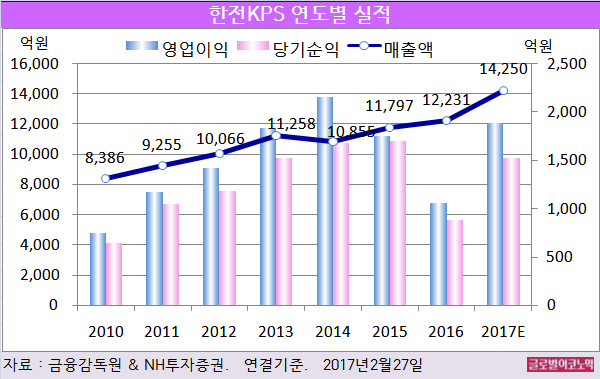 NH투자증권 이민재 연구원은 한전KPS의 올해 연결기준 매출액이 1조4250억원(전년비 +16.5%), 영업이익 1883억원(전년비 +78.0%), 당기순이익 1530억원(전년비 +73.3%)을 기록할 것으로 내다보고 있다.