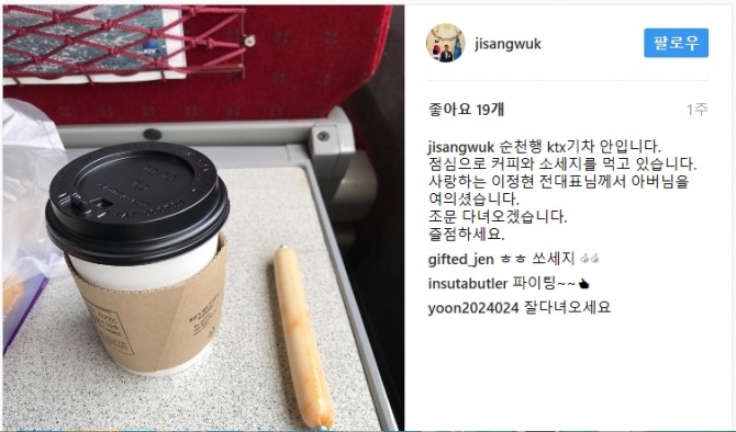 [글로벌이코노믹 최수영 기자] 바른정당 지상욱(중구성동구을) 의원이 이정현 전 새누리당 대표 부친상 차 탔던 순천행 ktx기차에서 소시지와 커피로 점을 때웠다.