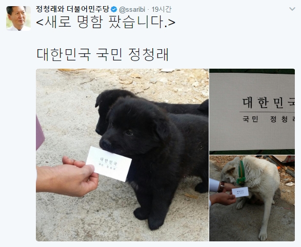 정청래, "새 명함 강아지에게 물리며..."