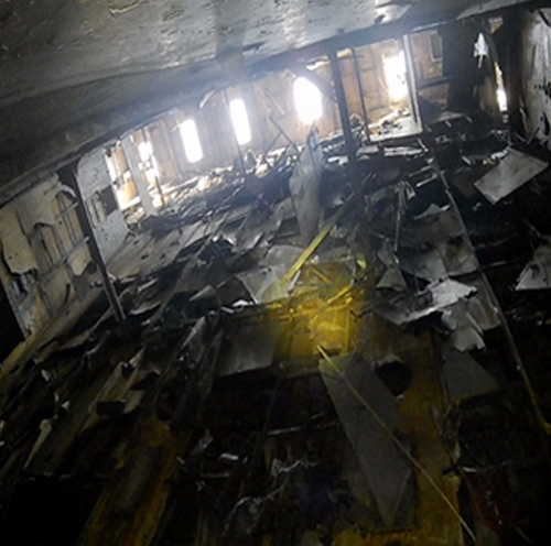 앞서 해수부는 지난 7일 A데크 내부를 촬영한 사진을 8일 공개했다. 이 사진에서는 우현과 중간, 좌현 측 객실이 무너져 있는 것을 확인할 수 있다. 현재 세월호는 좌현이 아래로 향한 상태로 인양된 상황이다.