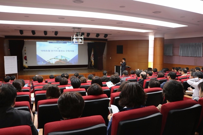 이미지 확대보기이번 설명회는 최근 뜨거워 지고 있는 전기차에 대한 관심을 반영하듯 지역내 공동주택 관리소장 및 입주자 대표 약 150명이 참석해 한전과 대구시의 전기차 보급 및 아파트형 전기차 충전소 구축사업 설명과 질의응답으로 진행됐다.