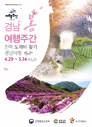 또한, 여행주간 동안 산청·합천 황매산 철쭉제, 하동 야생차 문화축제, 함안 낙화놀이 등 36개 축제가 도내 곳곳에서 개최되며 봄향기를 만끽할 수 있는 여행하기 좋은 관광코스 및 다양한 볼거리, 즐길거리 등을 제공할 계획이다.