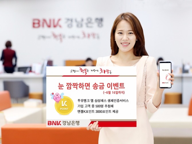 한편 투유뱅크 앱 삼성패스 생체인증서비스는 BNK경남은행 본점영업부· 창원영업부· 울산영업부· 김해영업부· 부산영업부 등 5개 영업점과 경남· 울산지역 삼성전자 디지털프라자· 주요 전자제품 매장· 이동통신사 대리점 등의 갤럭시 S8· 갤럭시 S8+ 체험존에서 체험할 수 있다.