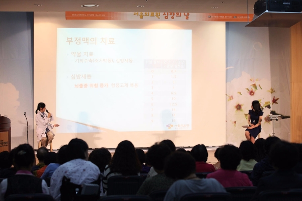 이미지 확대보기이번 행사는 심장의 날 강의에 참여한 지역주민의 이해를 도울 수 있도록 의료진과 사회자가 대담하는 토크콘서트 형식으로 진행됐으며, 알기 쉬운 질환 설명 토크와 함께 질의응답 시간을 가져 큰 호응을 얻었다.