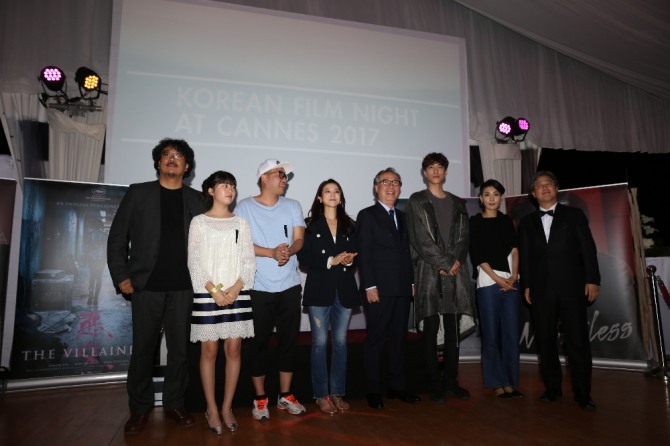 전 세계 영화인의 애도의 분위기 속에서 '한국영화의 밤' 리셉션에는 당초 초청 예정 인원을 훌쩍 뛰어넘는 국내외 영화인 650여명이 참석해 성황을 이뤘다. 특히, 올해 칸 국제영화제 경쟁부문 초청작인 '옥자'의 봉준호 감독, 변희봉 배우, 안서현 배우와 미드나잇 스크리닝 부문 초청작인 '악녀'의 정병길 감독과 김옥빈, 김서형, 성준 배우가 무대에 올라 박수를 받았다.