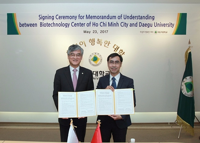 홍덕률 대구대 총장은 “이번 협약을 통해 대구대와 바이오테크놀로지센터, 한국과 베트남 간 산학협력 네크워크를 구축하고, 두 기관이 공동 연구를 하며 유망 기술을 개발·이전하고 지역 기업이 베트남에 진출할 수 있는 길이 열리길 기대한다”고 말했다.